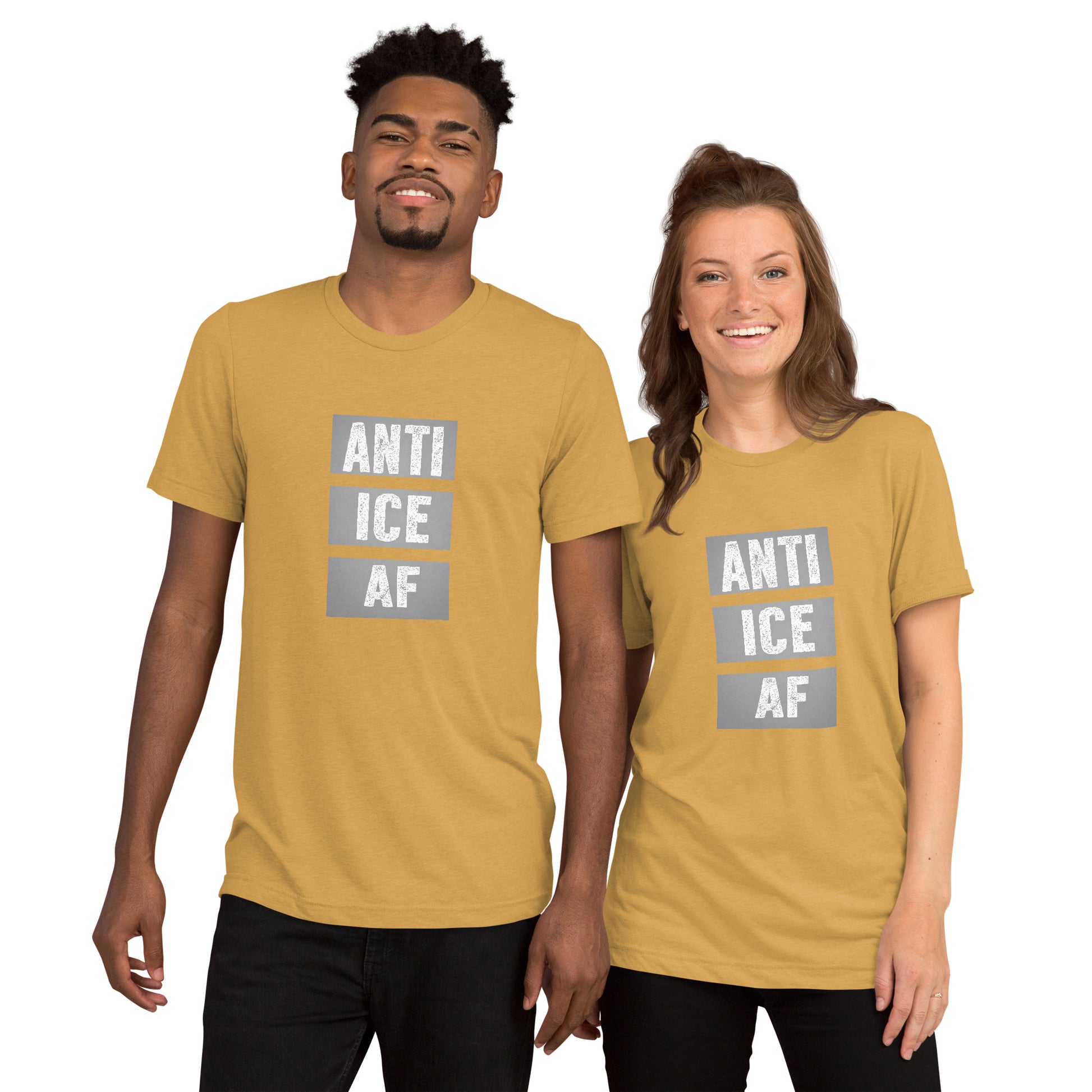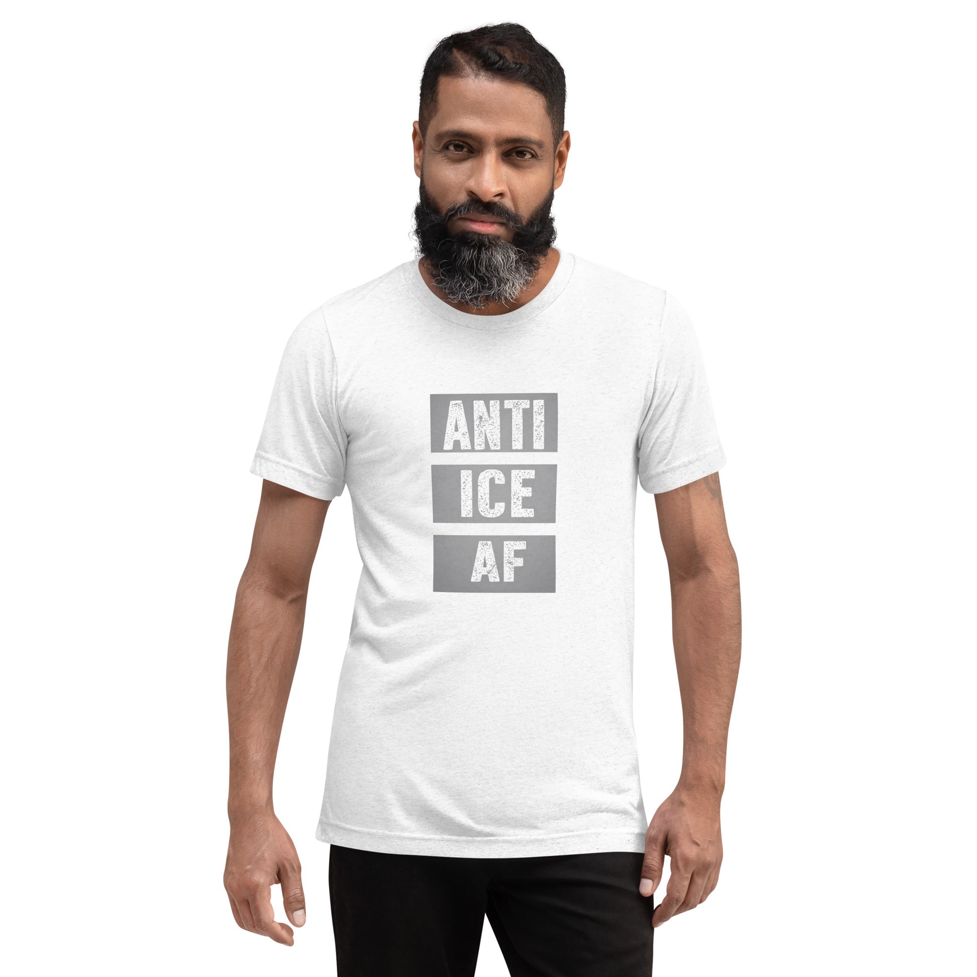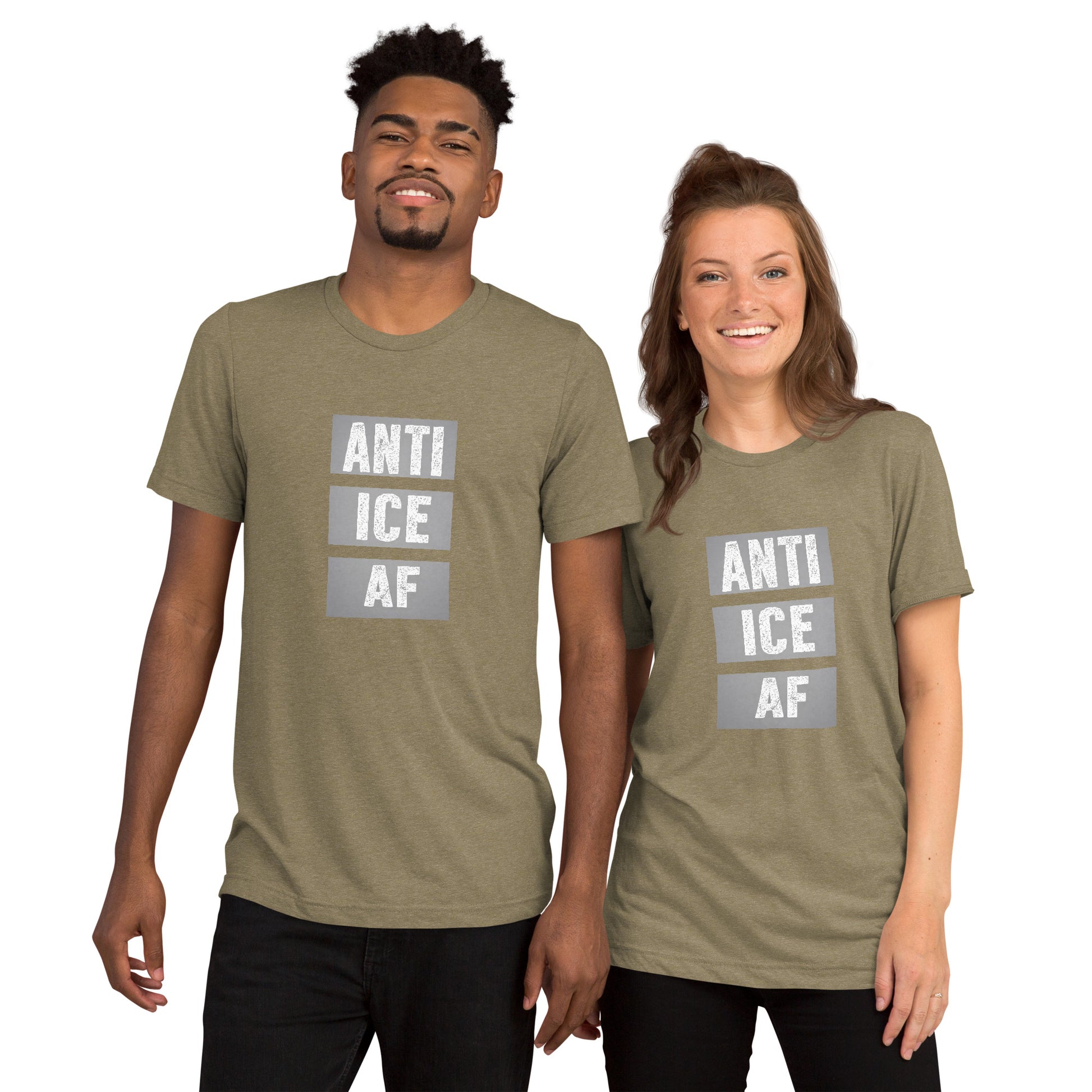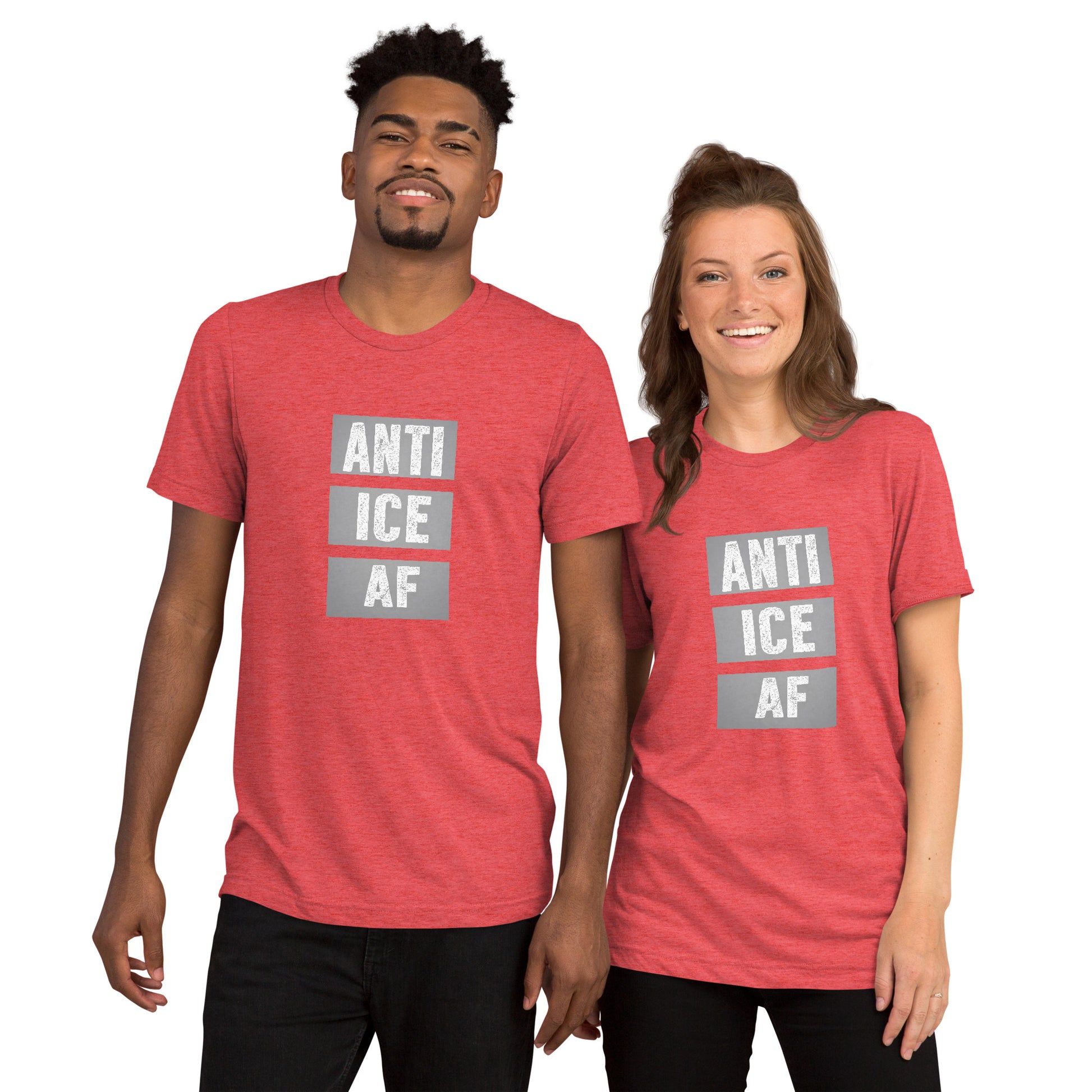 Make your voice heard with this bold ANTI ICE AF Short Sleeve Shirt — a must-have for anyone standing up for civil rights and the constitution. The tri-blend fabric creates a vintage, fitted look. Extreme durability makes this t-shirt withstand repeated washings and still remain super comfortable. Pairs classic streetwear vibes with modern resistance. Available in XS-3XL